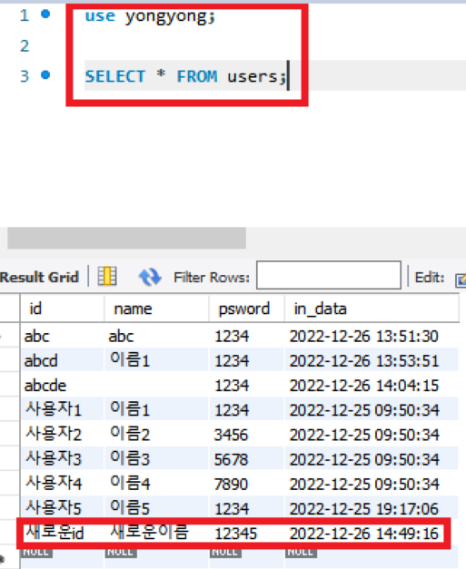 // 회원가입은 회원가입 창에서 입력한 id, name, psword를 받아서 users 테이블에 INSERT하는 것으로 처리