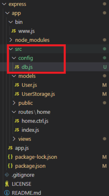 -src > config 폴더 생성 > config 폴더 내에 db.js 파일 생성