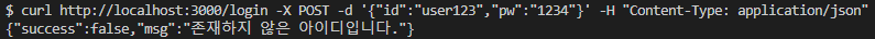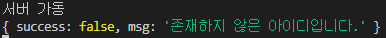 return { success: false, msg: "존재하지 않은 아이디입니다." };