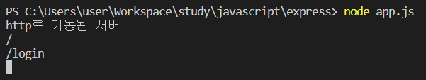 - 터미널에 'node app.js' 입력하여 서버 가동